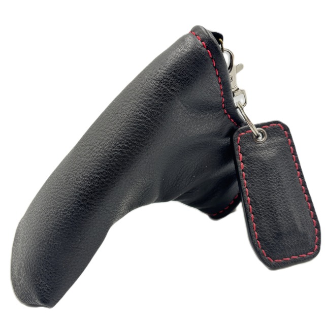 革の紹介含めて動画で細かく説明していますので、是非ご覧ください。 ★マレット対応などの大きさサイズに調整もできます(オプション+1500円)。 ご要望、ご不明点などあれば、ぜひ事前にお問合せください。 ★ナチュラルシュリンクレザーを使用したピン型パター用のカバーです。 非常に柔らかくソフトなレザーで、天然シボとマッドブラックが高い質感を醸し出します。 ★ステッチはアクセントに赤糸を使っています。 ★パターカバーホルダー用にフックを付けてあります。オプションの同じ革を使用したパターカバーホルダーを簡単に装着できます。取り付けフック無しもできますので、注文時の備考欄に”取り付けフック無し”と記入してください。 ★出し入れ部分は2か所のマグネット止め。非常に柔らかいレザーのためマグネット力は少し弱めにしています。 ★側面片側に”HANDMADE BELIEVE”のレーザー刻印をしています。刻印無しも出来ますので注文時の備考欄に”ショップ刻印無し”と記入してください。 ★無料でご希望の文字入れ(レーザー刻印)いたします。 パターカバー文字入れ”あり”を選択して、刻印文字を記入してください。 フォント希望あれば、”文字フォント”から入力してください(”選択無し”の場合は、フォントはおまかせとなります)。 2行目も刻印希望の時は、パターカバー文字入れ(2行目)から同様に入力をしてください。 ★約1週間の納期をいただいています。