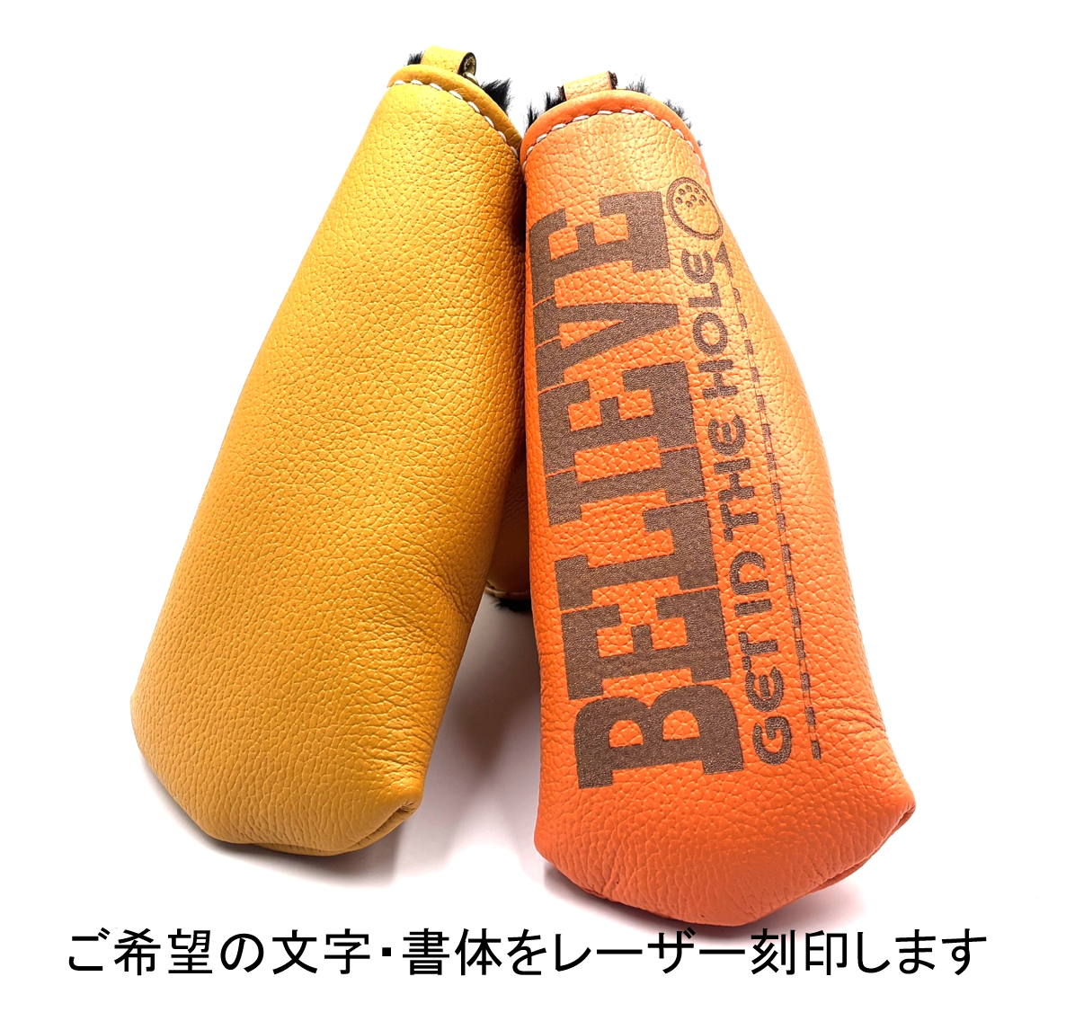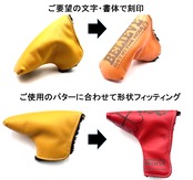 ご要望の文字・書体の刻印、お使いのパターに合わせたカバー形状フィッティングをいたします。基本サイズはマレット対応 幅広パターカバーです。