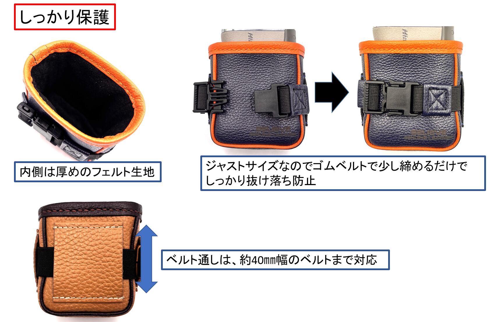 ★適度なしなやかさと硬さの本革レザーは、距離計ポーチに最適な素材です。