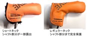 コンパクトを追求したショートネック版とピン型パターのシャフト部分までしっかり保護できるレギュラーネック版の2種類を準備しています。レギュラーネック版は、クラシカルなL字パターにも最適です。