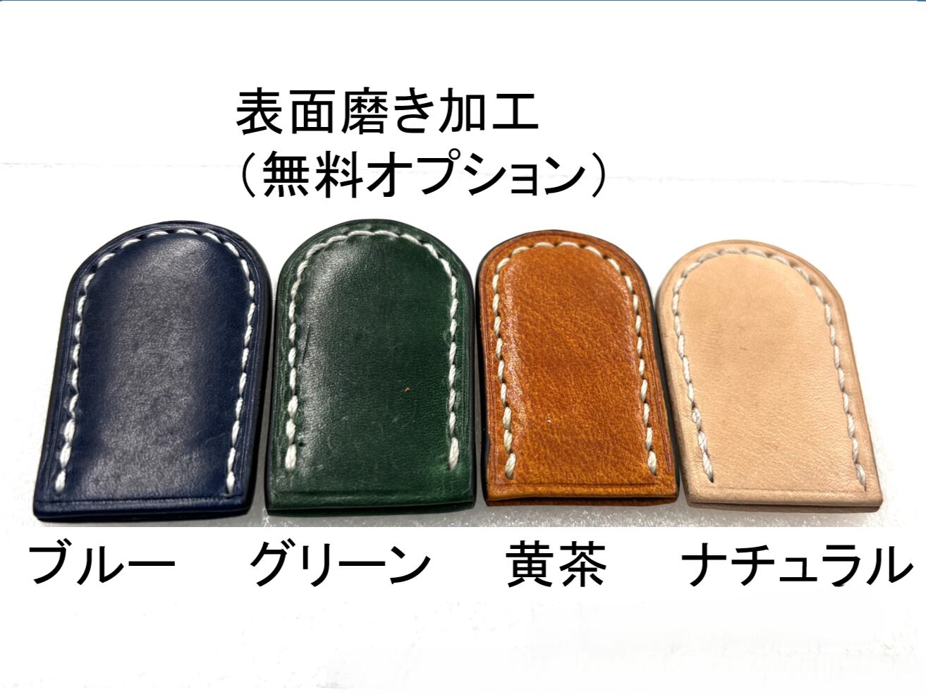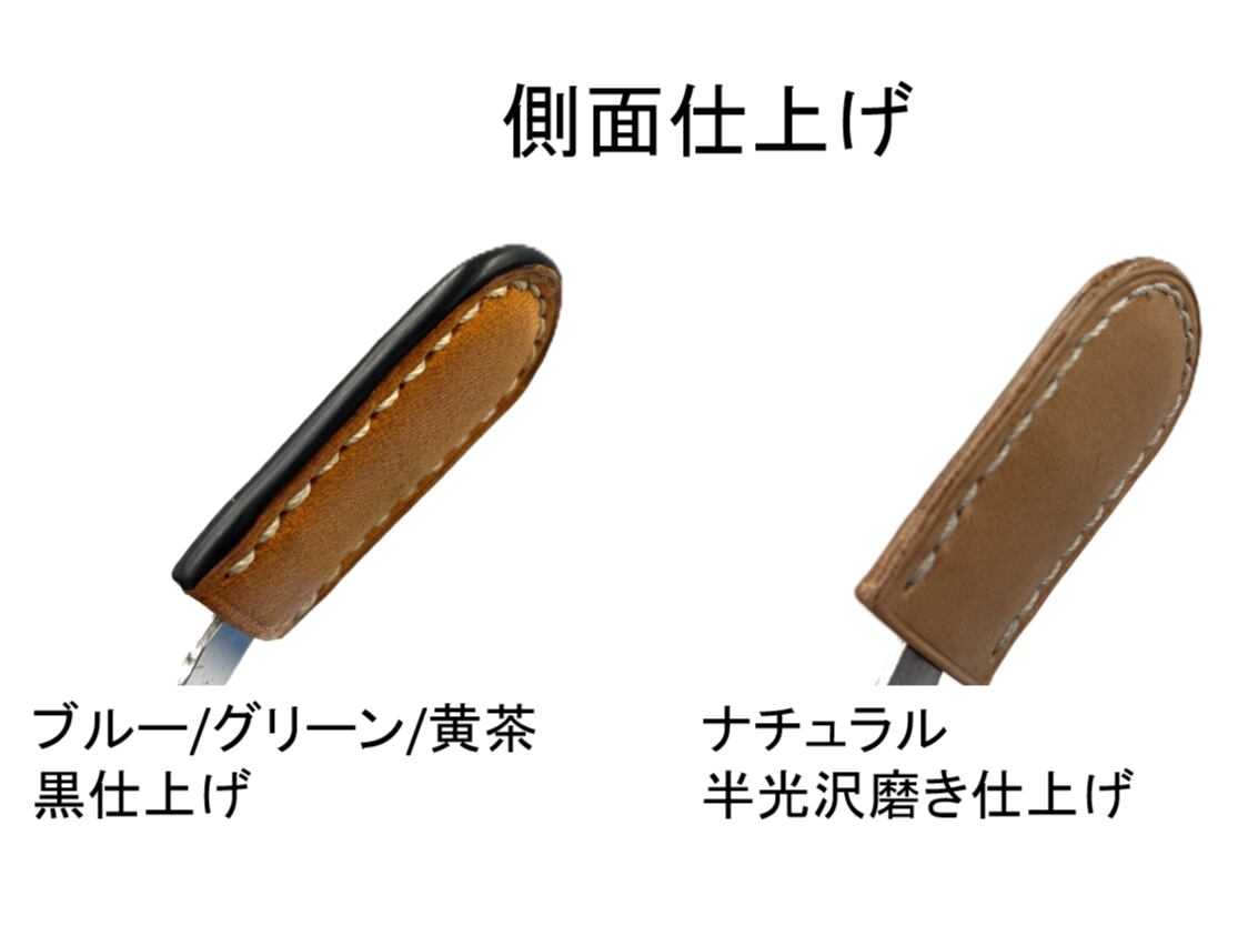 ★ナチュラルカラーは、国産姫路レザーを使用。もともと半光沢ですが、”艶加工”も選べます。側面はナチュラルさを活かした半光沢磨き仕上げ。